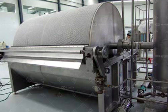 GYM过滤器专门用于磁铁精矿脱水。其进料槽位于滚筒顶部。滚筒中有永磁材料,因此可以使磁性颗粒快速吸附到滤布表面。